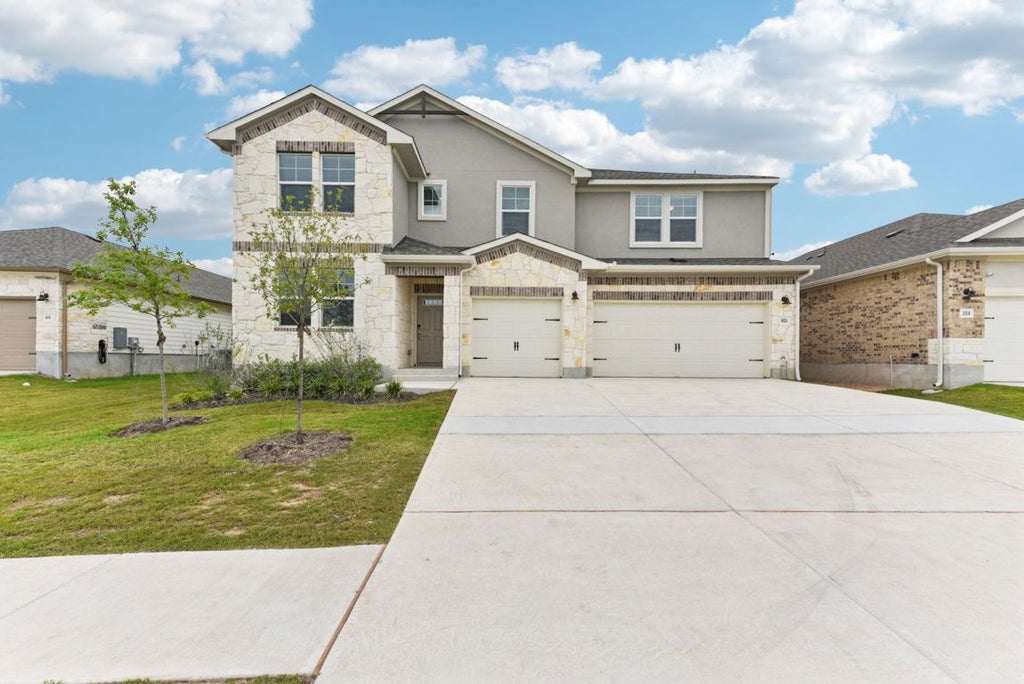 Welcome to Big Sky Ranch, where brand-new construction and thoughtful design come together in this stunning Meritage home. At 3,355 sq ft, with 5 bedrooms, 4 full baths, a 3-car garage, and every space you’ve been searching for, this one has it all. The open kitchen, breakfast, and living area is the heart of the home, highlighted by sleek white cabinetry, Quartz counters, a herringbone tile backsplash, oversized eat-up island, and stainless built-in appliances including a 5-burner gas range. The spacious breakfast area overlooks the backyard, while the living room offers great natural light and effortless flow. Enjoy a walk-in pantry and roomy laundry with washer & dryer included. The main level features a dedicated study, a guest room with full bath, and a primary retreat you’ll love to unwind in. The primary bath boasts a dual vanity, walk-in shower, separate soaking tub, and a large walk-in closet. Upstairs there’s room for everyone with 3 additional bedrooms, 2 full baths (including one ensuite), plus a spacious game room and media room ready for movie nights or weekend fun. Outside, the landscaped Bermuda yard plus stone, stucco, and touch of hardy plank exterior gives the home beautiful curb appeal, and the spacious backyard is ready for your vision, whether that’s a playscape, pool or an outdoor retreat under the big Texas sky. Big Sky Ranch offers nearly 50 acres of parkland, a 3.1 acre amenity center with pool, playground & splash pad, plus trails and access to Founders Memorial Park. Enjoy energy-efficient living in one of the best cities Texas has to offer - you'll love it here!