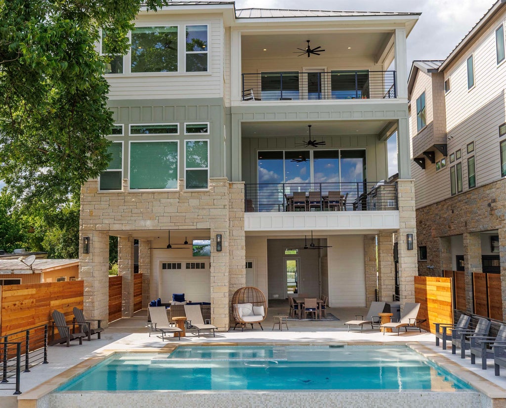 ** Builder incentive: $150,000 in Flex Cash (Buyers Choice - Where to Use!) ** Stunning New Construction Luxury Lakefront Retreat on Constant-Level Lake LBJ. Welcome to your dream lakefront getaway! Nestled on 50 feet of open water on the highly coveted constant-level Lake LBJ, this brand-new 2025 construction luxury home offers an unparalleled blend of modern elegance, comfort, and income potential — all just an hour from both Austin and San Antonio. This turn-key short-term rental opportunity comfortably sleeps up to 22 guests and is fully furnished, with projected rental income between $200K and $250K annually. Whether you’re seeking a serene family retreat, a high-end investment property, or both — this is it. Property Highlights: 5 spacious bedrooms, each with a private en-suite bathroom, 4,440 heated SqFt | 7,982 total SqFt including porches & garage. Vanishing edge pool & hot tub overlooking the lake. 2-slip boat dock with party deck for lakeside fun. Elevator access to all floors. 12-ft ceilings on the main level and 10-ft ceilings upstairs. Designer finishes throughout. Fully Outfitted for Fun: Pool table, ping pong, shuffleboard. Built-in outdoor grill & fire pit. 2 kayaks, 1 paddle board, corn hole and there is excellent fishing & boating year round. This exceptional home combines luxury living with lake life and offers the rare opportunity to own a fully equipped short-term rental in a prime location on one of Texas’s most desirable lakes. Don’t miss out on this one-of-a-kind lakefront gem.