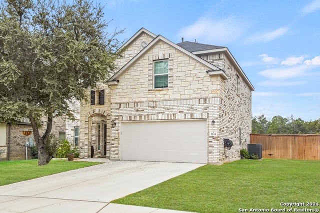 Nestled conveniently off I-35 in the vibrant city of New Braunfels, discover your next home in the welcoming community of Stone Crossing. This thoughtfully designed open-concept layout boasts soaring ceilings, giving the main floor an expansive feel perfect for entertaining. The Palisade plan is designed with all three bedrooms upstairs, creating a dedicated private retreat while leaving the entire first floor available for your guests to relax and enjoy. At the top of the staircase, you're welcomed into a spacious and secluded owner's suite featuring a generously sized walk-in closet. The en-suite bathroom elevates comfort with a double vanity, a luxurious soaking tub, and a separate stand-alone shower. The chef's kitchen is both stylish and functional, featuring elegant 42-inch cabinets, sleek quartz countertops, a gas cooktop, a built-in microwave, and a wall oven. Tile flooring extends through the main living areas and both bathrooms, adding durability and a modern touch. Cozy up in the family room by the fireplace, the perfect feature for chilly winter nights. The owner's suite also includes dual walk-in closets and a bath with both a soaking tub and a separate shower for a spa-like experience. Outdoor living is just as enjoyable with a covered patio and fully landscaped front and back yards, complemented by window coverings for added privacy. Move-in ready, this home combines luxury, comfort, and convenience in one beautiful package.