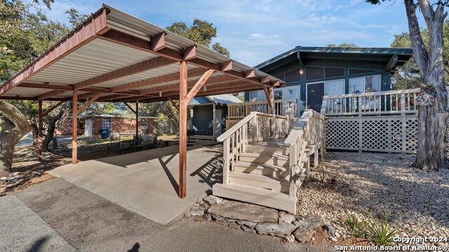 Nestled in a serene setting, this classic rustic home in the Canyon Lake subdivision offers a perfect blend of tranquility and recreational opportunities. If you enjoy water sports, golfing, and the convenience of nearby amenities, this community is an ideal choice. Residents can take advantage of a well-maintained larger swimming pool complete with shaded areas, along with two private waterfront parks that feature seasonal boat ramps and picnic spots. The property boasts a circular driveway and ample extra parking, complemented by a high-quality 20x20 carport suitable for cars or boats, all enclosed by a durable partial privacy fence. Inside, the den is enhanced by a cozy wood-burning stove, creating a warm atmosphere, while the handmade 8-foot cedar-topped bar adds a unique touch of character to the home.