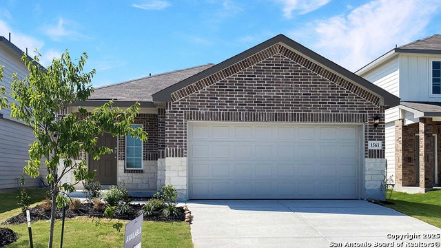 Step into The Brooke floor plan at Winding Creek in New Braunfels, TX, a one-story home featuring 3 bedrooms and two bathrooms. The Brooke also offers 2 classic front exteriors, a 2-car garage and 1396 square feet of comfortable living. The Brooke features an open concept layout that blends seamlessly to create the perfect everyday space. The gourmet kitchen separates the living area and dining room and includes granite counter tops, stainless steel appliances, and shaker-style cabinets. The main bedroom features an attractive ensuite bathroom complete with a granite vanity counter top, shaker style cabinets, separate water closet and a large walk-in shower. You'll have all the space you need to get ready in the morning with a large walk-in closet. You'll find quality carpet and closets in all of your secondary bedrooms, which can also be used as offices, play rooms or other bonus rooms. Head out the back door located off the dining room to find the rear covered patio (per plan) and full yard landscaping & irrigation. Additional features include sheet vinyl flooring in entry, living room, and all wet areas, granite counter tops in all bathrooms and our HOME IS CONNECTED base package. Using one central hub that talks to all the devices in your home, you can control the lights, thermostat and locks, all from your cellular device.