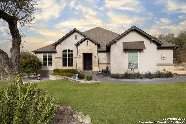 Nestled in the heart of the Texas Hill Country, 1207 Acquedotto offers luxury living in the highly sought-after Vintage Oaks community. This stunning residence boasts 4 bedrooms, 3.5 baths, and an open-concept layout designed for both comfort and elegance. Highlights include a dedicated office/study, a spacious game/bonus room, and a large formal dining area-perfect for entertaining. The gourmet kitchen flows seamlessly into the living space and is outfitted with all appliances included. A bedroom with a private en suite provides a perfect retreat for guests. Crown molding, window treatments, and custom-designed fireplace doors with a matching mantle from Dallas add unique charm and sophistication. Enjoy outdoor living on the expansive covered patio, overlooking a beautifully landscaped and fully fenced yard with a large gate. The property features a variety of trees, including fruit trees, offering privacy and natural beauty. Additional features include a 30-amp outlet for an RV, whole-home surge protection, generator setup, UV lights and ionizer on air handlers for improved air quality, and so much more. Conveniently located near New Braunfels, historic Gruene, and within a short commute to both San Antonio and Austin-this home is Hill Country living at its finest!