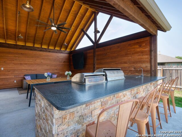 Exterior Features | Patio Slab, Covered Patio, Privacy Fence, Sprinkler System, Double Pane Windows, Deck/Balcony, Other - See Remarks, Outdoor Kitchen |