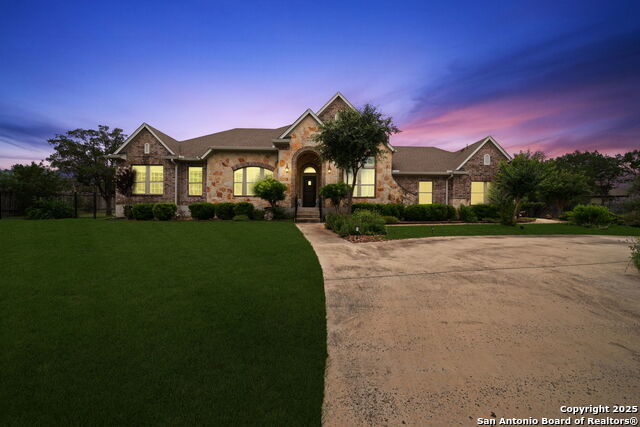 Amazing home in the highly desired Rockwall Ranch Community!!! Nestled on 1.324 acres in a cul de sac, this remarkable one story, three bed, three bath, three car garage home with an office has a ton to offer. Inside you will find hand scraped hard wood flooring throughout the entire home except in the bathrooms which have stylish tile. As you enter the foyer you will see a large office to your left and a formal dining room to your right with high ceilings and crown molding. As you walk past all of them, it opens up to an enormous great room that includes the living room with a limestone surround fireplace, informal dining room, oversized breakfast bar, island kitchen with gas cooking, built in appliances, and oodles of cabinets and counterspace. There is also, a breathtaking primary suite with a luxurious primary bath and two stroll-in closets. The secondary en suite bedroom has walk-in shower. The last secondary bedroom is right across the hall from the third full bathroom. Off the three car garage is a extra wide, super long driveway with room for an RV that is connected to more parking on the circle drive. For outdoor living there is 29x17 sqft. covered patio with, a ceiling fan, TV mount, and remote operated solar shades. It is so peaceful to just sit out there and look at the beautifully manicured yard and enjoy nature in comfort. Come see this retreat in the Texas Hill Country today!