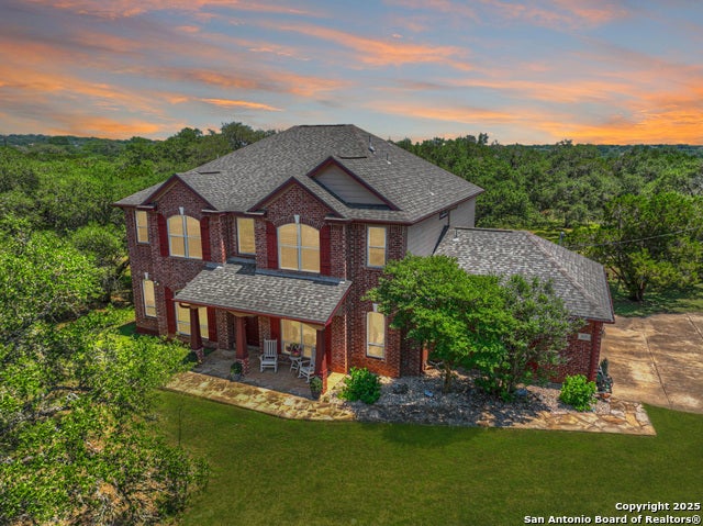 Enjoy QUIET SECLUSION at this large 4+ bedroom home nestled on a 2.14 ac. wooded lot. Enter through the automatic gate to this serene oasis, surrounded by mature trees and tranquil woods with perimeter fencing. The fully updated kitchen will delight the chef of the family, with ample storage, granite countertops and custom updated cabinets. The soaring ceilings in the family room open to the beauty outside, grounded by a corner fireplace. Double eating areas allow for easy entertaining and a designated office space behind double French doors invite remote work opportunities. The downstairs primary suite is light and bright with an en-suite updated bathroom and large walk-in closet. New tile flooring downstairs and new LVP upstairs means there is no carpet in this home. Upstairs, you will find a large lofted landing area with a game room (currently used as a bedroom) plus 3 more large bedrooms and 2 full baths. The oversized 20' x 20' screened-in back porch is flanked by additional open patio areas and provides a haven for reading, relaxing, or visiting with friends and neighbors. Additional storage buildings are tucked away in the backyard space, which extends well into the trees. This home is just minutes from the River Chase private Guadalupe River Park. Residents of River Chase also enjoy other amenities such as 2 swimming pools, a fitness center, a clubhouse, fishing pond, playgrounds, walking/jogging track and tennis courts. Zoned to popular Comal ISD schools and within easy access to New Braunfels shopping, medical facilities, the Historic Gruene District, and area attractions and events. Schedule your private showing today!