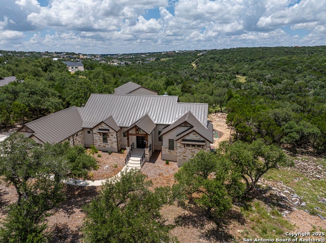 Welcome to this stunning custom-built home in the highly sought-after community of Vintage Oaks. This exceptional residence offers 4 spacious bedrooms, 3.5 bathrooms, and a 3-car attached garage on nearly 1.5 acres. The home includes an impressive detached structure with 1,271 sq ft of additional space that was designed with versatility and sophistication in mind. Soaring 14 foot ceilings create an expansive feel, while oversized garage doors provide both aesthetic appeal and practical access for multiple uses. Whether envisioned as a high-end workshop, studio, or future guest casita, the infrastructure is already in place for a seamless build out. When you step inside the home, you'll find exquisite custom features throughout, like soaring wood-beamed ceilings in the living room, custom built ins, and a cozy sunroom complete with a fireplace. The gourmet kitchen is a chef's dream, featuring stainless steel Monogram appliances, an induction cooktop in the kitchen, granite countertops, and a large farmhouse sink. The home boasts an expansive butler's pantry with a custom sliding door and space for an extra fridge, along with a separate walk-in pantry. The attached casita provides ideal accommodations for guests or extended family, offering a kitchen area with a sink, and a private bathroom featuring a walk-in shower with a bench. The laundry room includes a deep sink and abundant storage, adding to the home's functional appeal. No detail was overlooked, including a hidden room that is perfect for a safe. While outdoors, enjoy impressive views off of the oversized covered back patio, complete with a built in outdoor grill and sink. The xeriscape landscaping blends beautifully with mature trees and native wildlife, creating a serene Hill Country retreat. Residents of Vintage Oaks enjoy world-class amenities including multiple pools, a lazy river, tennis and basketball courts, and miles of walking, hiking, and biking trails-plus a pickle ball court that is coming soon. This one-of-a-kind property truly offers luxury, comfort, and community.