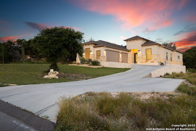!!Custom Builders Personal Home!! Excellent quality on this custom design and build by Burlingame Construction. On a large 1.21 Acre lot in the highly regarded subdivision of Mountain Springs Ranch. This lot comes with plenty of elbow room and privacy due to terrain contours of the neighboring lots. Located in Comal ISD, and in the highly rated and sought after Smithson Valley feeder system. With a sizeable drive and a large, paved court in front of the home, you will find it very convenient for all sorts of family dynamics and hosting guests as well, along with the three-car oversized side entry garage. The entire exterior is stone and stucco to ensure longevity with minimal maintenance, while being extremely energy efficient and an energy star certified home for reduced ownership costs, couple that with no city taxes and the value this home presents begins to really take shape. Upon entering the home, the height of the ceilings throughout certainly makes an impression along with the tasteful and impressive ceiling treatments, rather they be backlit double coffered ceilings to classic geometric recesses, or the recessed display niches in the gallery hallway really show the level of thought and detail in this custom design. A nice office at the front of the home is given a large window to compliment it. Porcelain tile throughout the home for the most durable worry-free finishes continue to highlight the versatility and quality of the design and construction of this home. Towards the rear of the home an impressively expansive open-living area full of stylish touches, from the backlit coffered ceiling treatments to the delighting placement of windows for an energetic ambiance. This is the heart of the home where it invites you to live and dine comfortably. The kitchen comes well equipped with plenty of cabinet storage, double ovens, a gas range for the purists, pot filler, undermounted large sink with plenty of transom windows for natural light. A large pantry that could be used for service to enhance entertaining. There is a split master retreat, with an incredible bathroom and a very large closet with custom built-ins. There are two other suites on the other side of the home, both with walk in closets. Off the oversized three car garage with an epoxy floor coating and storage racks there is a large utility room, as well as a landing/mud room area. Off the back of the living area more versatility through design presents itself with a nice breezeway covered patio, with a built in outdoor kitchen setup and a great patio for al fresco dining or relaxation is abutted by the detached dwelling for the aging family member or for the privacy of house guests equipped with a full bath and walk in closet. The tiled back patio continues down the steps to a great setting for a fire pit or a future infinity edged pool. A buried 250-gallon propane tank fuels the range, stubbed out at the back patio kitchen. 2366 Comal Springs is a great offering that I'm proud to present, it will facilitate the best the Hill Country has to offer with great Comal ISD schools, Smithson Valley Highschool and near Canyon Lake for increased recreation, and Texas wine country is just a short trip away. Also convenient to the Nation's 7th largest city and an International Airport.
