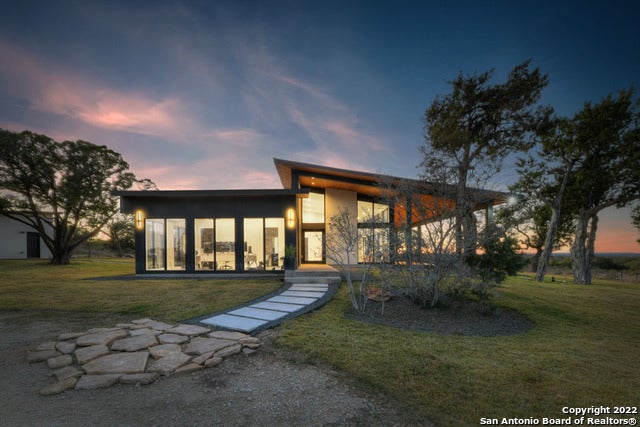 Modern Luxury in the Texas Hill Country Experience the perfect blend of contemporary design and natural beauty in this exceptional custom-built home, set on +/- 10.25 acres in the heart of the Texas Hill Country. Crafted by the acclaimed Dynamic Custom Homes and designed by Oscar Flores Design Studio, this residence showcases impeccable craftsmanship, clean architectural lines, and expansive windows that bring the outdoors in, offering breathtaking views from every room. The open-concept layout creates an inviting space ideal for entertaining and everyday living. The gourmet kitchen is a chef's dream, featuring an oversized island, abundant countertop space, high-end appliances, and a stylish dry bar. The serene primary suite and luxurious en suite bath provide a private retreat, while every room reflects thoughtful attention to detail and spaciousness. Step outside to a generous covered patio with ceiling fans, perfect for enjoying the Texas weather year-round, along with a separate fire pit area for relaxed gatherings. The property also includes a detached two-car garage and benefits from an agricultural exemption on nine acres. This is truly an extraordinary opportunity to own a stunning piece of Texas Hill Country. Schedule your private showing today.