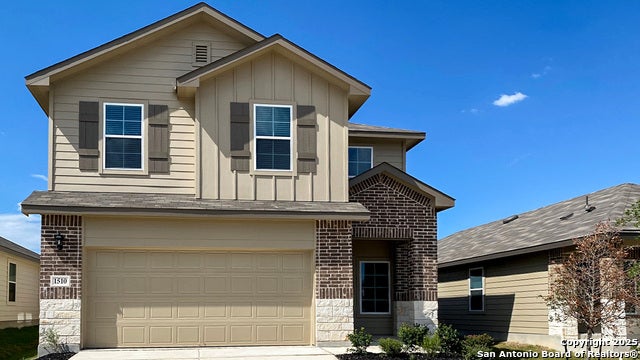 "Welcome to The Emma, a two-story home located at Winding Creek in New Braunfels, TX. This floor plan offers 2 classic exteriors, 2-car garage, and a full yard landscaping and irrigation package, ensuring that your home looks it's best every single day. Inside this 3 bedroom, 2.5 bathroom home, you'll find 1700 square feet of living space. The entry opens to grand family room before flowing into the kitchen and dining area with an open floorplan concept. The gourmet kitchen includes quartz counter tops, shaker style cabinetry, stainless steel appliances, large breakfast island, and spacious pantry. Head up the stairs to find the main bedroom suite, all secondary bedrooms, the laundry room, and a second full bath. The Emma layout is perfect if you love entertaining downstairs and relaxing upstairs. The private main bedroom features an attractive ensuite with plenty of shelving space and shaker style cabinetry. A spacious tiled walk-in shower, separate door for your toilet, and large walk-in closet provide all the space and convenience you need. Additional features of The Emma floor plan include sheet vinyl flooring in entry, living room, and all wet areas, quartz bathroom countertops, and a covered back patio (per plan). This home includes our HOME IS CONNECTED base package. Using one central hub that talks to all the devices in your home, you can control the lights, thermostat and locks, all from your cellular device.