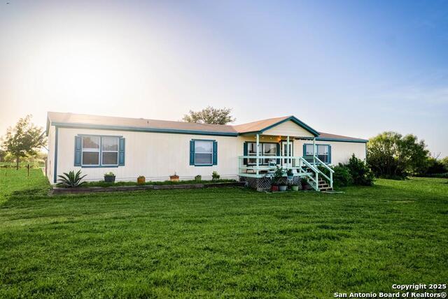 This super spacious mobile home sits on 10.4 acres just 20 minutes from Main Street in Fredericksburg, offering serene Hill Country views and endless possibilities. The split floor plan features a master suite with an en-suite bath, walk-in closet, and dressing room, plus three additional bedrooms and a full second bath. Enjoy two living areas-one with a cozy fireplace and French doors that open to the swimming pool and sun-soaked deck. The large kitchen includes a pantry and flows into the dining room, while a mudroom/laundry area and generous storage space lead to the back deck. A guest cabin offers great potential for rental income or hosting visitors. The property is cross-fenced, gated, ag exempt, and unrestricted-perfect for your dream retreat or hobby farm. Outside, you'll also find a dedicated tool shed stocked with assorted tools and lawn equipment, providing a ready-made setup for property maintenance or outdoor projects.