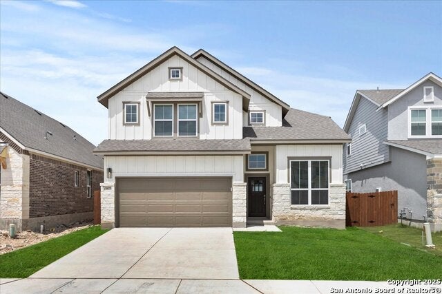 MOVE IN READY Chesmar Home in Meyer Ranch! This thoughtfully designed two-story home offers 4 spacious bedrooms, 3 full baths, & versatile living spaces perfect for today's modern lifestyle. A private study off the foyer creates the ideal home office or quiet retreat. The open-concept layout seamlessly connects to a large, covered patio. The luxurious downstairs primary suite features a Texas-sized walk-in shower, dual vanities, and a massive walk-in closet. Upstairs, you'll find two additional bedrooms, a full bath, and spacious game room perfect for move nights & fun!
