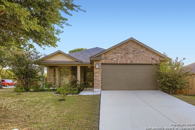 This inviting single-story home offers three bedrooms and two bathrooms, perfectly situated on a desirable corner lot. Recent updates totaling $23,000 include fresh interior and exterior paint, updated light fixtures, and high-end carpet in the bedrooms, making this home move-in ready. Inside, a separate dining room sets the stage for memorable meals, while the kitchen features a breakfast bar and a charming picture window-perfect for sitting at the table to do homework or enjoy breakfast. The kitchen opens to the living room for effortless entertaining and everyday comfort. The spacious primary suite offers a peaceful escape with an en-suite bathroom complete with dual vanities, a walk-in shower, and a luxurious soaking tub. Enjoy your morning coffee or favorite evening beverage from the covered front porch or back porch. A fully fenced backyard provides privacy and includes a handy storage shed, ideal for gardening tools or outdoor gear. The neighborhood also features an amenity center with a pool and playground, adding even more ways to relax and have fun close to home. Convenient to IH-35, San Antonio, Austin, restaurants, and retailers, this home blends thoughtful design, modern updates, and an open layout for the perfect combination of comfort, style, and location.
