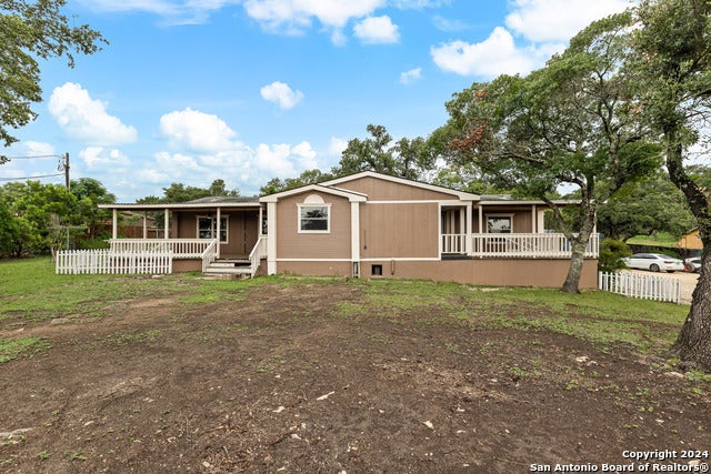RARE TRIPLE WIDE SITTING HIGH ON THE HILL WITH A GREAT VIEW OF HILLCOUNTRY AND VIEW OF CANYON LAKE. HOME HAS HAD EXTENSIVE REMODELING INCLUDING NEW HEAT/AC INSTALLED IN THE CEILING VS FLOOR. KITCHEN COMPLETELY UPDATED FEATURING UPGRADED APPLIANCES, LIGHTING, COUNTERTOPS, CENTER ISLAND WITH VEGETABLE SINK, PANTY, LOTS OF CABINETS AND BUILT-IN BUTLER'S PANTY. VERY LARGE LIVING AREA ADJOINING FORMAL DINING AREA THAT IS LARGE ENOUGH FOR THE BIGGEST GATHERINGS. ENORMOUS PRIMARY BEDROOM WITH LUXURY BATH FEATURING LARGE CORNER GARDEN TUB, SEPERATE SHOWER, DOUBLE VANITIES AND ALL UPDATED INCLUDING CABINETS, COUNTER, FIXTURES, LIGHTS AND MORE. HUGE WALK-IN CLOSET. THE OTHER TWO BEDROOMS ARE ALSO BIG WITH LOTS OF CLOSET SPACE. TWO DECKS ON THE FRONT OF THE HOME OVERLOOKING HILL COUNTRY PLUS WALK OUT THE BACK TO THE RAISED DECK IN BACK WITH LAKE VIEWS THAT WOULD BE GREAT FOR BBQS. TWO CAR CARPORT, METAL STORAGE SHED WITH ROLL UP DOOR. ALL THIS SITTING ON 1 ACRE OF LAND AND ALL THAT IS MISSING IS YOU. ENJOY RESORT LIVING AT A VERY INEXPENSIVE PRICE. SHORT TERM RENTALS ARE ALLOW.