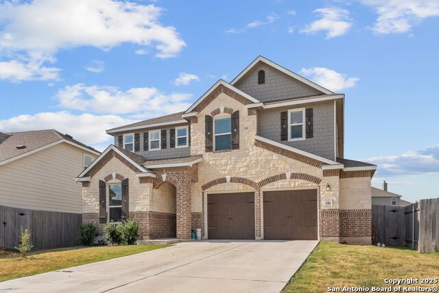 Welcome to 295 Kat Garnet, a spacious two-story home offering 4 bedrooms, 2.5 bathrooms, and a first-floor office that can serve as a 5th bedroom. The open layout features a large center-island kitchen with stainless steel appliances, walk-in pantry, dry bar, and cabinet lighting, flowing into the dining and living areas with soaring ceilings. The primary suite includes an 11x11 flex space ideal for an office, workout area, or sitting room, along with his-and-her walk-in closets, dual vanities, and a walk-in shower. Upstairs you'll find three additional bedrooms, a full bath, and a game room. Additional highlights include a two-car garage with extended storage, dual smart thermostats, two AC units, a covered patio, and a spacious backyard. Neighborhood amenities feature a park, playground, and basketball court, with a prime location just 20 minutes to downtown Austin and one hour to San Antonio.
