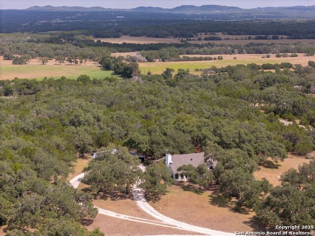Rare opportunity to own a beautiful Hill Country home on the desirable northwest side of Cox Road, backing up to a large private ranch for added privacy & scenic views. Surrounded by majestic oak trees & excellent street appeal, this property is just minutes from the Blanco River, downtown Blanco, Blanco State Park, & offers an easy commute to both Austin & San Antonio. The home features a detached outbuilding with a workshop & covered parking, a spacious pavilion perfect for BBQs & gatherings, a fenced & very private backyard, plus a large covered back porch ideal for relaxing or entertaining. Inside, you'll find a well-designed layout with a large family room & fireplace, separate dining area, & a spacious island kitchen. The downstairs owner's retreat includes a private bath with a separate tub & shower, a walk-in closet, & a flex room/study with exterior access-perfect for a home office or gym. Upstairs offers two additional bedrooms with a Jack & Jill bath. This move-in ready Hill Country gem combines comfort, privacy, and convenience-and it won't last long!