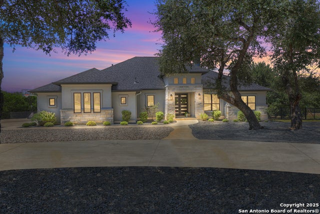Welcome to this exceptional 4-bedroom, 3.5 bath home built by Grand Endeavor Homes, and nestled in the prestigious Vintage Oaks community where Hill Country charm meets modern luxury. Thoughtfully designed with superior craftsmanship, and a functional open layout, this single-story home showcases premium finishes throughout and a stunning outdoor living space complete with a full kitchen, sparkling pool, and a PGA- level putting green with six tee boxes. Situated on a beautiful xeriscaped acre lot, this single story home exudes elegance from the moment you arrive. Soaring ceilings, wide plank floors, and expansive windows flood the home with natural light while providing picturesque views of the surrounding hill country. The chef's kitchen is a dream, featuring high-end appliances, a spacious center island with quartz countertops, custom cabinetry, and a walk-in pantry- all seamlessly connected to the great room and dining area for effortless entertaining. The spacious family room features a gas fireplace, built in shelving, tray ceilings, and oversized windows. In addition to four generously sized bedrooms, this home offers both a dedicated office that is perfect for remote work or even as a quiet reading space- as well as a separate game room, ideal for family fun, media, or entertaining guests. The expansive primary suite is a true retreat, featuring elegant tray ceilings and abundant natural light. Its spa-inspired en suite bath includes a luxurious soaking tub, oversized walk in shower, dual vanities, and a spacious walk-in closet-combining everyday comfort with high-end style. Step outside to your personal backyard oasis where luxury living continues. The expansive covered patio features a full outdoor kitchen, remote controlled shades, and ample space for lounging and dining. From here, enjoy views of the sparkling pool and a premium golf practice facility- a rare combination that delivers relaxation, entertainment, and recreation right at home. As a resident of Vintage Oaks, you'll also enjoy access to world-class amenities, including resort-style pools, a lazy river, a state-of-the-art fitness center, and miles of scenic hiking, biking, and walking trails. Sports enthusiasts will appreciate the basketball, tennis, pickleball, soccer, and softball facilities-all designed to support an active, vibrant lifestyle. This home offers the perfect blend of luxury, functionality, and Hill Country living. Don't miss your opportunity to make it yours.