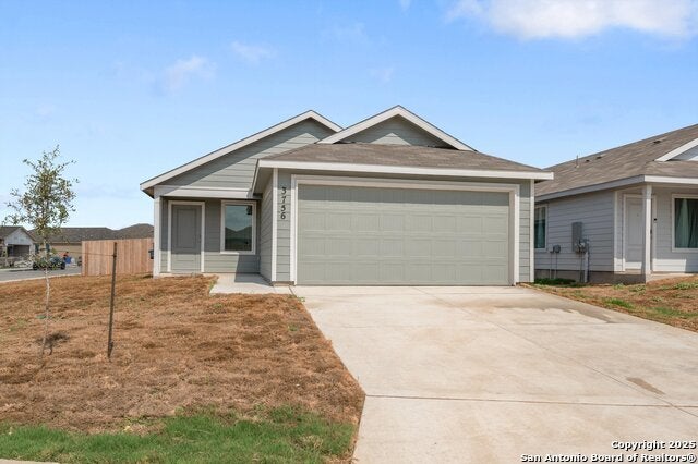 Inviting open-concept floor plan property in Steelwood Trails! This 1402 Sq Ft home, built in 2024, offers modern comfort and thoughtful upgrades throughout. The property comes complete with a refrigerator, washer, and dryer for added convenience. Enjoy new lighting in all bedrooms, a freshly epoxied garage floor with shelving, and a sprinkler system to keep your lawn lush. Additional features include flood lighting with motion detection, a newly installed outdoor water faucet, and extra tiles extending the exterior walkway. Located close to shopping, dining, and the charm of historic Gruene-this home combine style, functionality, and a prime location.