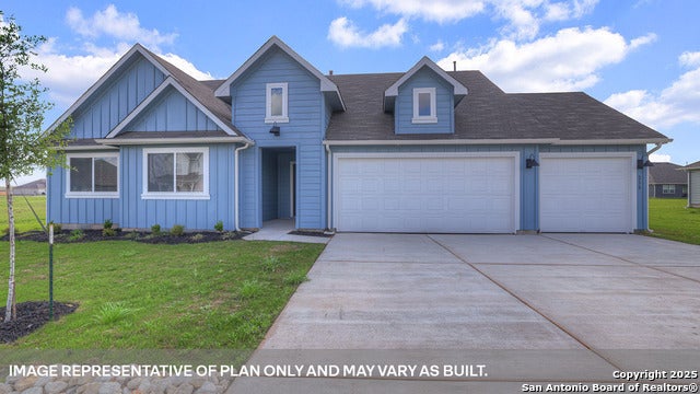 JANUARY ESTIMATED COMPLETION DATE. Check out the Holden at Sonoma Oaks, a one-story floorplan featured in our community in Fredericksburg, Texas. Designed across 2,314 square feet, this home includes 4 bedrooms, 2 bathrooms, study and 3 car garage. Our homes in Sonoma Oaks feature our modern farmhouse exteriors. Step inside the home from the covered entryway into the foyer. Down a short hall, you will find the secondary bedrooms, bathroom, and the utility room. Each bedroom includes a closet with shelving and the secondary bathroom features a shower/tub combination as well as a private door to the toilet and shower area. Moving through the short foyer, you will enter the kitchen, dining and family room. This spacious open concept living area will become your retreat at the end of the day. The kitchen includes an island with undermount sink, quartz countertops, decorative tile backsplash, a corner pantry closet, stainless-steel appliances and 36'' upper cabinets. The family room opens to the bright study, perfect for a home office or library. The primary bedroom is tucked away off the family room and includes a private bathroom with his and hers walk in closets. Enjoy the luxurious 5' walk in shower, quartz countertop vanity with double sinks, and a private toilet area with a door in this large bathroom space. The Holden includes vinyl flooring throughout the common areas of the home and the primary bedroom, and carpet in the secondary bedrooms. All our new homes at Sonoma Oaks feature a covered back patio, full yard landscaping, and irrigation system. This home includes our America's Smart Home base package, which includes a Video Doorbell, Front Door Deadbolt Lock, Home Hub, Thermostat, and Deako Smart Switches.