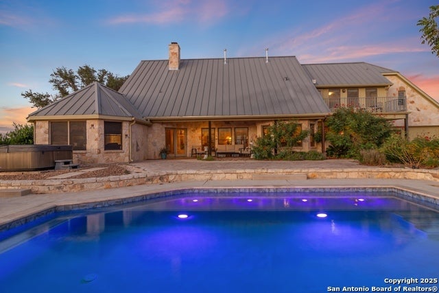 Seller will contribute $17,000 toward buyer's closing costs with an acceptable offer. Priced to move with flexible terms-bring your offer. On 28+ ag-exempt acres in gated Spring Creek Estates, this 2004 stone ranch (~3,182 SF) delivers true Hill Country living minutes to Fredericksburg and the 290 Wine Trail. Live easy: 4BD/3BA, airy great room with big-view windows, doors to a sparkling pool + patio, and a granite-island kitchen (double ovens, gas cooktop). Split primary suite with spa bath and walk-in closet; upstairs addition/4th BR for media, gym, or office. Serious utility: private water well, fully fenced & cross-fenced pastures, and a 4060 insulated workshop/barn with RV/boat bay-motor-coach friendly door & overhang-plus dedicated RV hookups (power + in-wall sewer) so you can park and stay fully connected under cover. Separate 1BD/1BA guest apartment for multigenerational living, caretaker, or income. Horses welcome. Ag valuation helps keep holding costs low. Per owner/HOA guidelines, on-property hunting is permitted-axis, whitetail, and wild turkey are commonly seen (buyer to verify CCRs/HOA).