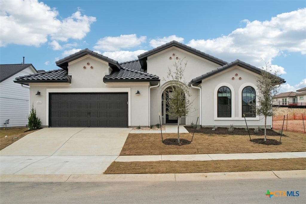 Monroe plan with upgraded kitchen, quartz countertops, optional study, tile flooring, upgraded bronze windows, full gutters, sliding glass door in living, Express cordless blinds, tankless water heater in garage