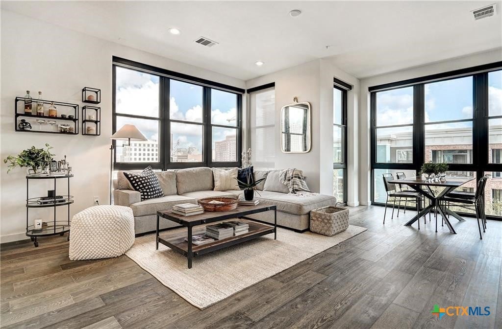 Live in the heart of vibrant East Austin with downtown views, walkability and style. This highly sought after 2 bedroom, 2 bathroom corner unit with a cozy office/flex space, separate storage unit and two reserved parking spaces is offered by a motivated seller - this is your opportunity to buy smart in a HOT location. Located in The Tyndall at Robertson Hill, this residence offers breathtaking city views and glimpses of the Capitol and iconic Austin landmarks through floor-to-ceiling windows that flood the space with natural light. Inside, you'll find a thoughtfully designed floor plan, ensuring privacy between the primary suite and secondary bedroom. The primary suite offers an ensuite bathroom with large walk-in closet, while the open kitchen, dining and living area create an inviting space for entertaining. High-end finishes include stainless steel appliances, quartz countertops, wood flooring and automatic blackout shades in both bedrooms, living and dining areas, for ultimate privacy. Experience a luxury lifestyle with premier amenities, like 24/7 concierge service, resort-style pool with downtown views, outdoor lounge with covered grills & seating, a state-of-the-art fitness center overlooking the city, clubhouse with full kitchen for entertaining, business center, media room, conference room, private courtyard with fire pit, two pet runs, bike storage and extra guest parking. Two reserved, side by side parking spaces are conveniently located in the gated parking garage. A separate mid-size storage unit conveys and there's access to a private freight elevator making access for moving, effortless. Don't miss out on this exceptional opportunity to live an exceptional lifestyle! *Preferred lender offering .5% off current interest rate until end of November.