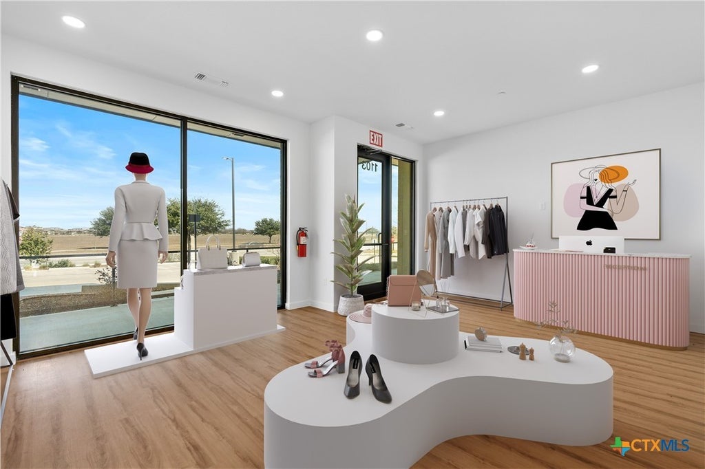 Seize this unique opportunity to own a versatile live/work unit in the sought-after Mercer complex, nestled in the vibrant Freiheit Village of New Braunfels. Designed for both entrepreneurs and homeowners, this unit features a dedicated storefront with a separate entrance that is perfect for a small business, office, or creative studio, while maintaining a private owner’s suite with its own secure entrance. Inside, you’ll find a spacious 1 bedroom, 1 bath layout with an open concept design, high ceilings, and abundant natural light from expansive windows. The modern full kitchen offers sleek finishes and ample storage. Located in a prime area, this property offers excellent visibility and is just minutes from Creekside, Resolute Health, shopping, dining, and major retail hubs. Plus, with new residential developments rapidly expanding in the area, there is the benefit of growing exposure and foot traffic. As part of The Mercer, you’ll enjoy resort-style amenities, including a sparkling pool, outdoor entertaining areas, lounge spaces, and a dog park creating a perfect blend of convenience and luxury.
