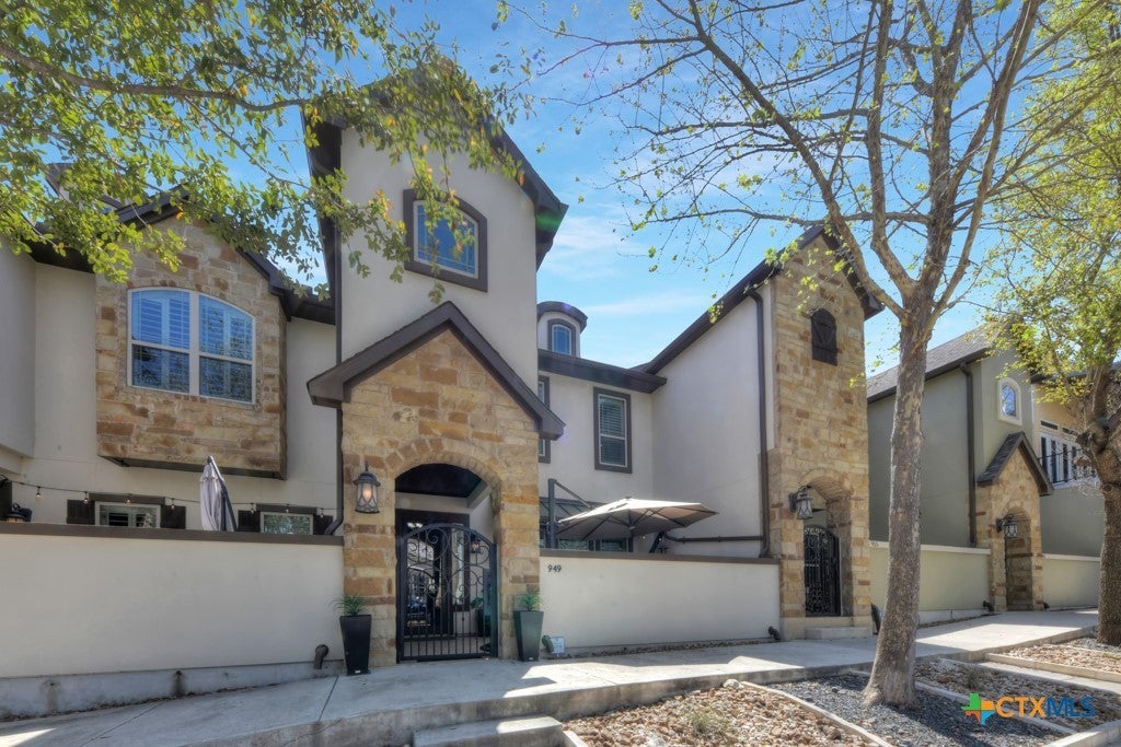 No monthly maintenance fee and low HOA fee; under $41.oo per Month! This stunning Townhouse is located in Town Creek right in the heart of New Braunfels! A short walk to Downtown New Braunfels, Landa Park, The Wurstfest grounds, and Schlitterbahn. Meticulous owners have taken much pride in this gorgeous Townhouse, and it shows! Open floor plan with 10' ceilings downstairs and 9' ceilings upstairs! Beautiful wood flooring throughout including stairs. Window features include plantation shutters throughout & solar shades on back windows. Oversized master suite & bath features a stand-alone soaking tub, walk-in tiled shower with seat, 2 large walk-in closets, dual vanities w/leathered granite. Large upstairs 2nd/3rd bedrooms w/walk-in closets & access to back balcony. Laundry room with marble counters, sink & plenty of storage. Kitchen features large walk-in pantry, granite counters, 5 burner gas cooktop, subway tile backsplash, custom cabinets & large island. Mud room off garage/kitchen & half bath downstairs. Exterior has been repainted, oversized 2-car garage with bump out that includes sink with its own water heater, sealed and epoxy floor coating, storage racks, water softener stays, one of the few homes with 4 off street parking spaces! A Great home to live full-time or use as a Lock & Leave weekend retreat.