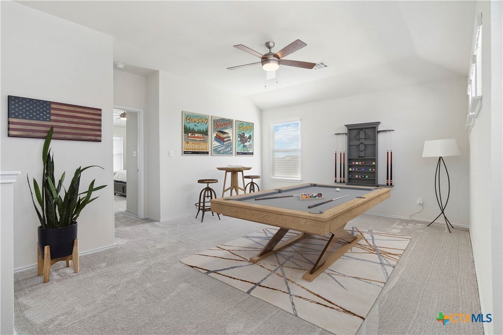 Upstairs includes a versatile second living space ideal for a family room or game room. The primary suite offers two walk-in closets, a double vanity, walk-in shower, linen closet, and private water closet. Three additional bedrooms accommodate a large family, guests, or a second office.