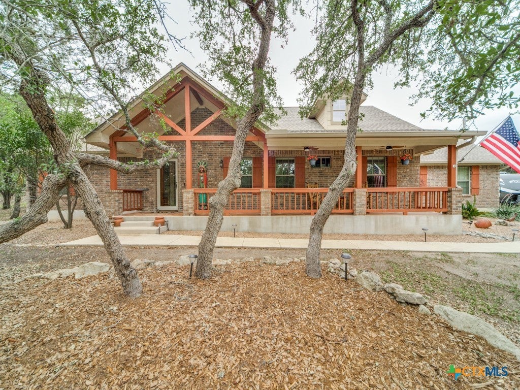 Enchanting Lake Country Retreat Awaits: Tucked away on 1.5 acres of majestic oaks, this lake area residence blends peaceful seclusion with unbeatable convenience. Just a short drive from Canyon Lake boat ramps, the iconic Whitewater Amphitheater, the Guadalupe River, and the vibrant hubs of San Antonio, Austin, and Texas wine country, this home places you at the heart of Texas living. Interior features include an open-concept layout, spacious kitchen with granite counters, stainless appliances, built-in microwave, updated range/stove, extensive cabinetry with timeless appeal, tile flooring paired with hardwood in bedrooms, and fireplace in the family room. The outdoor oasis is a haven for wildlife enthusiasts and will relax you with its covered front porch, covered back patio, deck, charming covered bar, firepit area perfect for gatherings, and RV parking with electric plug for guests. Plus this property offers a 2 yr old roof and the added benefit of a potential VA assumable loan. Don’t miss your chance to claim this stunning Texas Hill Country gem as your forever home!