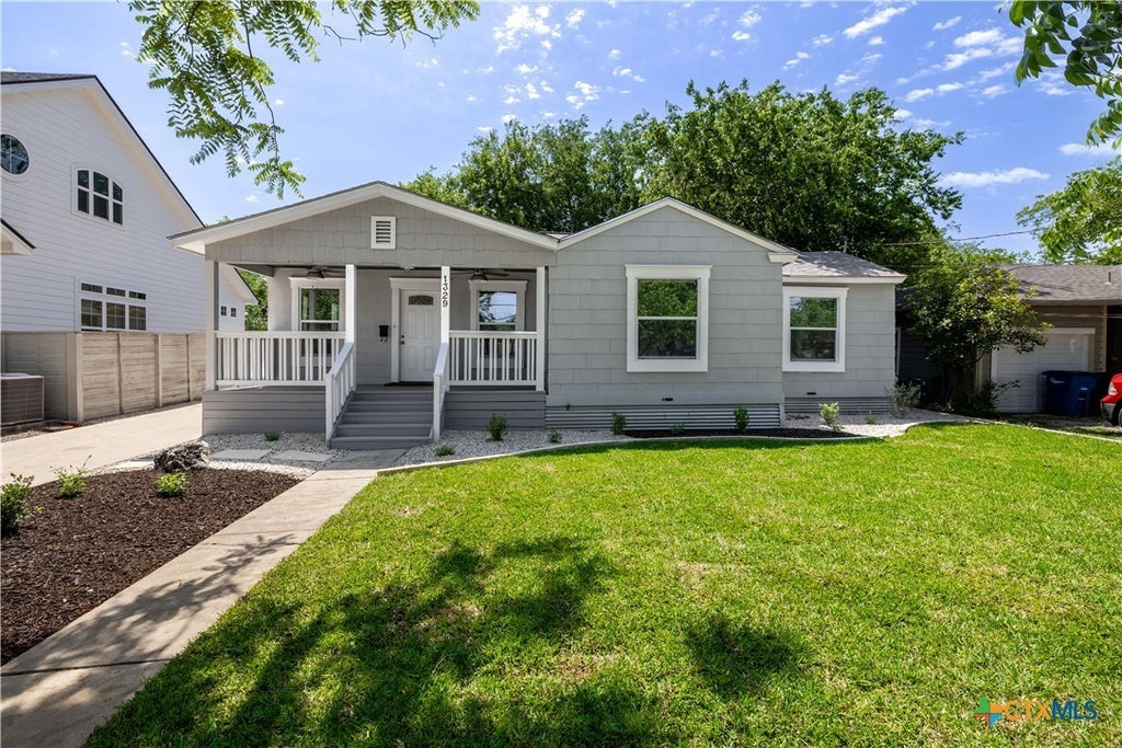 Just a short stroll from the Comal River, Landa Park, and all the restaurants, shops, and events that make New Braunfels such a vibrant place to live, this timeless home offers the perfect blend of character, comfort, and unbeatable location. Set on a fully landscaped lot-front and back - you're welcomed by mature trees, manicured flower beds, and a charming covered front patio. Inside, you'll find warm wood floors, classic built-in bookcases, and large windows that fill the living area with natural light. The large dining room offers plenty of space for hosting and enjoys a lovely view of the backyard, creating a seamless indoor-outdoor connection. The kitchen has been thoughtfully updated with a spacious center island, custom cabinetry, a sleek modern range, and a farmhouse sink that adds timeless style. Ample counter space and abundant storage make it as functional as it is beautiful. The primary suite features multiple closets and a well-appointed en-suite bath with a walk-in shower and tasteful finishes. The split-bedroom layout places the two secondary bedrooms on the opposite side of the home, offering peace and privacy for guests. Both rooms are generously sized and share a full bathroom with vintage appeal. Step outside to enjoy the beautifully landscaped backyard, offering a serene and private space to entertain, garden, or unwind. A storage shed adds extra convenience, while the lush, established landscaping enhances the home's charm and character. With its walkable location, timeless features, and authentic New Braunfels personality, this home is a rare downtown treasure-blending old soul and modern comfort in all the right ways!