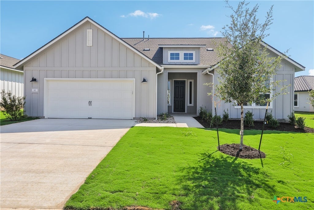 Monroe plan with upgraded kitchen, quartz countertops, tile flooring, sliding glass door in living, 42" Natural Gas fireplace, optional cabinets in utility room with sink, optional study with double doors, enlarged covered patio, optional tray ceilings in entry and master