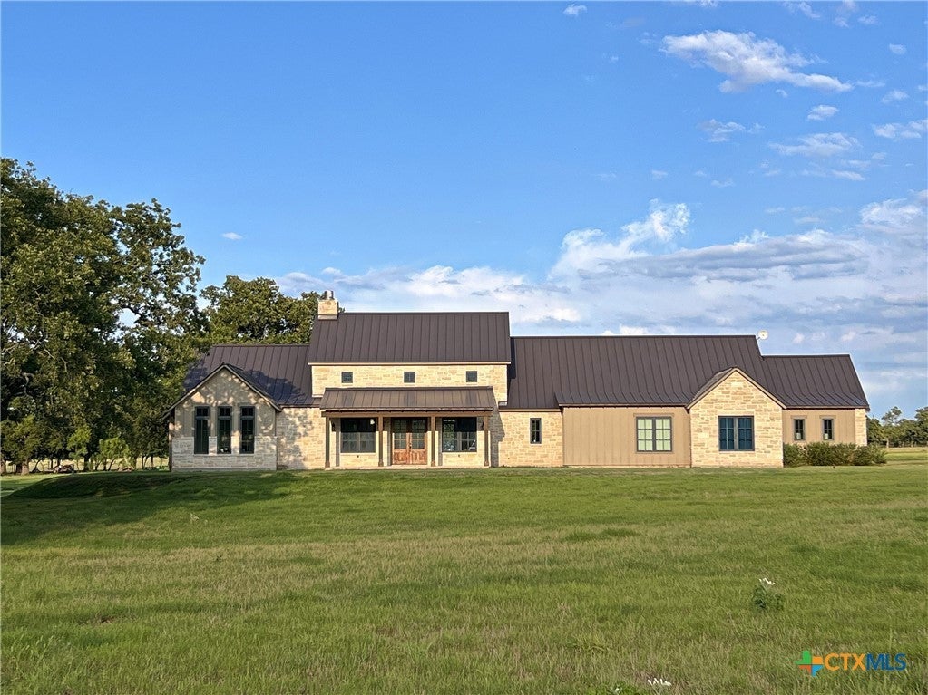 Welcome to your dream Hill Country retreat just five minutes from downtown Fredericksburg, TX. This beautifully crafted 3,809+/- sq ft custom rock home, built in 2019, sits on 8.38+/- private, tree-studded acres filled with mature hardwoods, offering both privacy and natural beauty. The spacious layout includes 3 bedrooms, a flex room, a dedicated home office, 4 full bathrooms, and a half bath—perfect for both everyday living and entertaining. The open-concept living area features high ceilings, abundant natural light, and quality finishes throughout. A large utility room, 2-car garage, and generous storage ensure function matches form. Step outside to a sprawling back porch ideal for hosting or simply enjoying peaceful Hill Country sunsets.