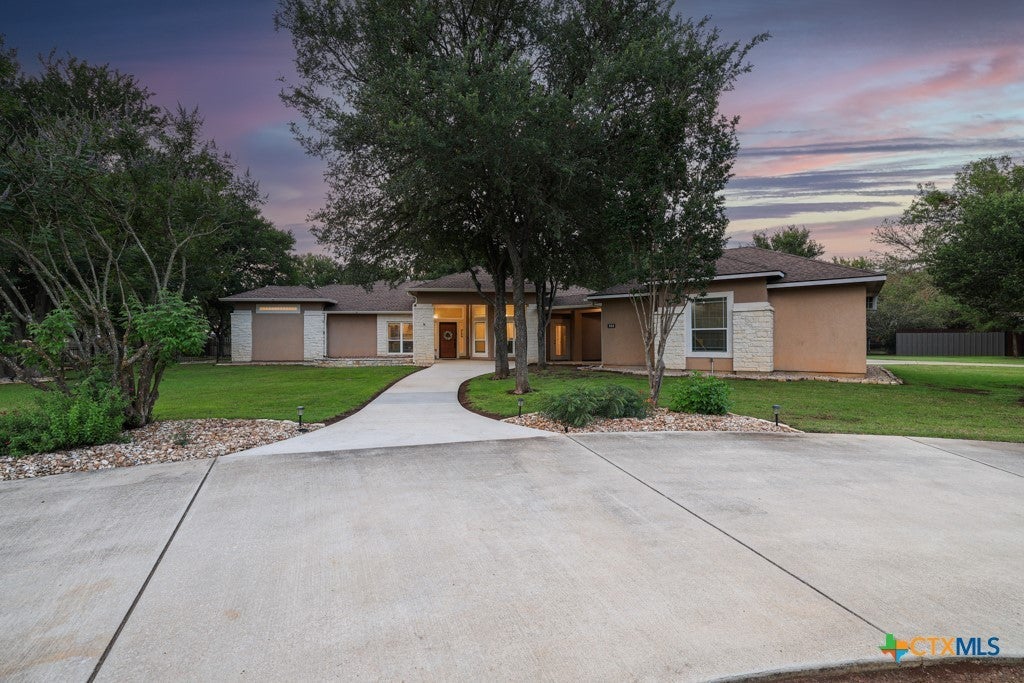 Tucked away at the end of a quiet cul-de-sac in the gated community of Texas Country Estates, this lovely 3-bedroom, 2-bath home offers comfort, space, and a peaceful Hill Country setting. Sitting on a full acre with mature trees and a circle drive, the property also includes a detached garage connected to the house by a covered breezeway. Inside, you'll find a warm and welcoming living area with a beautiful brick fireplace as the centerpiece. The open layout connects the living room to the dining area and kitchen, which features stainless steel appliances and a convenient breakfast bar—great for everyday living and casual gatherings. A cozy reading nook just off the living room provides the perfect spot to relax, while the dedicated office includes built-in shelves for books or storage. The primary bedroom is spacious and includes an en-suite bath with a jetted tub, walk-in shower, double vanity, and a large walk-in closet. The backyard is a true highlight, offering both a covered patio and a flagstone seating area with plenty of space to enjoy the outdoors. Whether you're entertaining friends or just enjoying the quiet surroundings, this home is a wonderful place to settle in. If you're looking for a home in a peaceful, gated neighborhood with room to spread out, this one is worth a closer look.