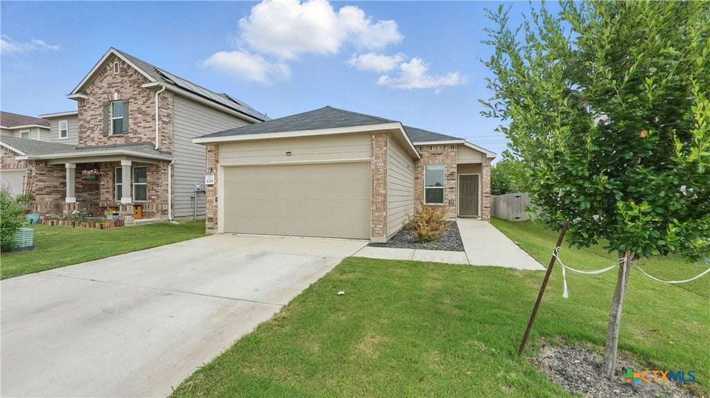 Welcome to this like-new, thoughtfully designed, stylish home. From the moment you step inside, you'll appreciate the clean, modern aesthetic-featuring luxury vinyl plank flooring throughout (no carpet!), soaring 9-foot ceilings, and elegant rounded corners. The kitchen shines with 42" white cabinets, upgraded countertops, and a classic tile backsplash-ideal for everyday cooking or weekend entertaining. Blinds are installed on all windows, and the extended covered patio provides a peaceful retreat with no rear neighbors. Ideally located directly across from the brand-new Legend Point Elementary (opening August 2025) and within walking distance to Long Creek High School. Enjoy community amenities like a pool, playground, and garden park. Don't miss this modern gem in one of the fastest-growing areas of Central Texas.