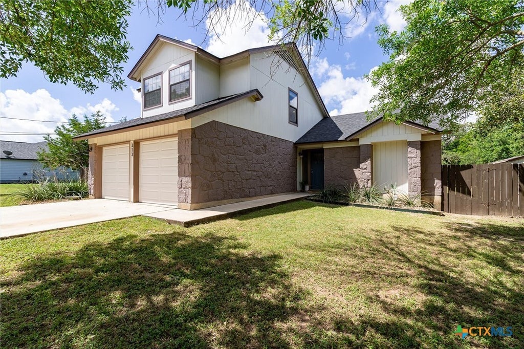 PRICE IMPROVEMENT!! Brand new 2.5 ton HVAC System installed!! Situated on a spacious 0.69-acre lot just outside city limits, this charming two-story home offers both comfort and character in a tranquil, tree-filled setting. Step inside to find updated luxury vinyl plank flooring and a striking, soaring fireplace as the centerpiece of the living room, framed by dramatic vaulted ceilings that invite natural light and warmth. Just off the living room, a cozy breakfast nook with beautiful bay windows creates the perfect spot for morning coffee or casual dining, leading into the galley-style kitchen with sleek granite countertops and efficient design. Also on the main level, the inviting primary suite offers a peaceful retreat with abundant windows, dreamy natural light, and charming bench window seating — ideal for relaxing and taking in the serene views. Upstairs, you’ll find two plush secondary bedrooms, a full bath, and a versatile nook space perfect for reading, remote work, or play. Outdoors, enjoy peaceful strolls along your private walking path or unwind under the expansive covered patio, surrounded by mature trees and a natural landscape that offers both beauty and privacy. An RV hookup adds flexibility for guests, travel lovers, or future expansion. With no city restrictions or HOA and plenty of room to roam, this property blends tranquility, charm, and potential — all just 5 minutes from outlet shopping and a short 15-minute drive to both downtown San Marcos and New Braunfels.