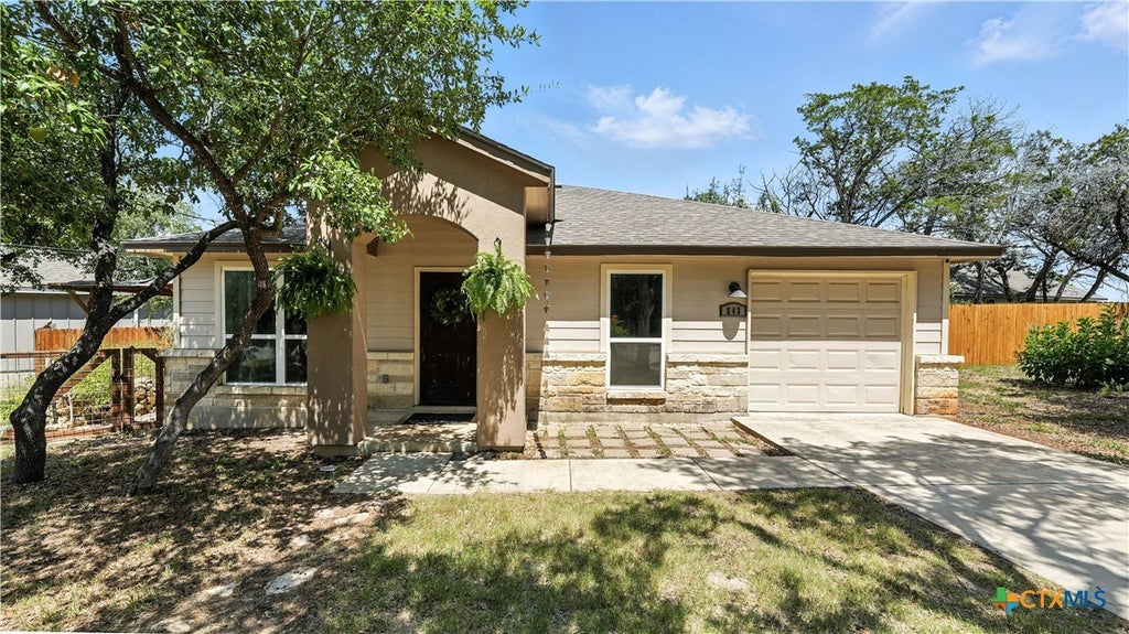 Welcome home to the Texas Hill Country where a quiet street with gorgeous landscaping welcomes you, and your neighbors across the street will always be the lovely oak trees. This home features an outdoor seating and a patio area great for hosting made with repurposed lumber from a 1910 barn. Granite countertops in the kitchen with shaker cabinets, upgraded appliances and hardware are just part of the experience. Each feature in the bathrooms gives a spa like experience where taking time to decompress is almost unavoidable. The garage is heated and cooled; so if you wanted, it can be made into an office or extra living space! The lot has room to build a detached garage next to the house and driveway! Don't wait, this won't last long.