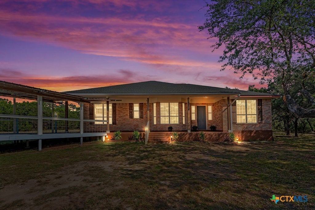 This handsome ranch home is situated in the Ledge Rock community, which boasts numerous beautiful features. It is located on a sprawling 5,100-acre lot. Where Hill Country sunsets span miles. Lush green panoramic views all around. It is an incomparable little gem on a private road. Many trees offer shade during Texas summers. A welcoming, large front porch would be a perfect spot for a morning cup of Joe or a glass of wine after a long day.
