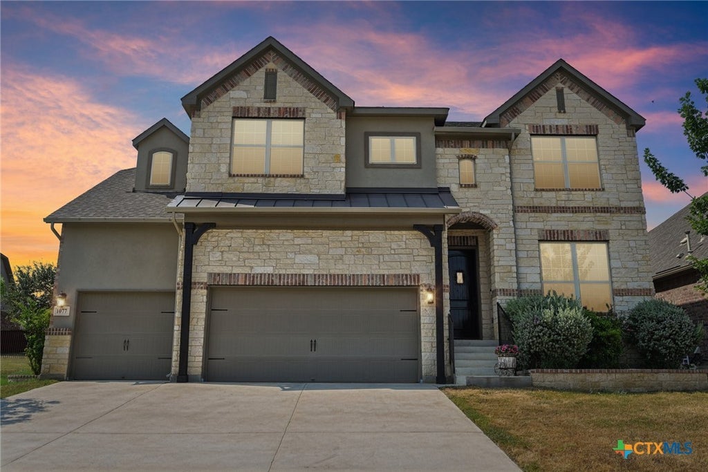 Situated in the highly sought-after Stone Crossing Estates, this exceptional 4-bedroom, 3.5-bath home offers luxury living with thoughtful upgrades throughout. The spacious floor plan includes a dedicated office, formal dining room, breakfast area, and additional seating at the kitchen island. The gourmet kitchen is a chef's dream, featuring a gas cooktop, double built-in ovens, built-in microwave, pot filler, and ample counter space. Enjoy movie nights in the theater/media room, pre-wired for surround sound, or gather around the cozy gas fireplace in the living area. The primary suite provides a private retreat, while the covered patio is perfect for outdoor relaxation. Additional features include a 3-car garage, no neighbor to the left, and a prime location directly across from the park and walking trails. With its blend of comfort, convenience, and style, this home is truly a rare find!