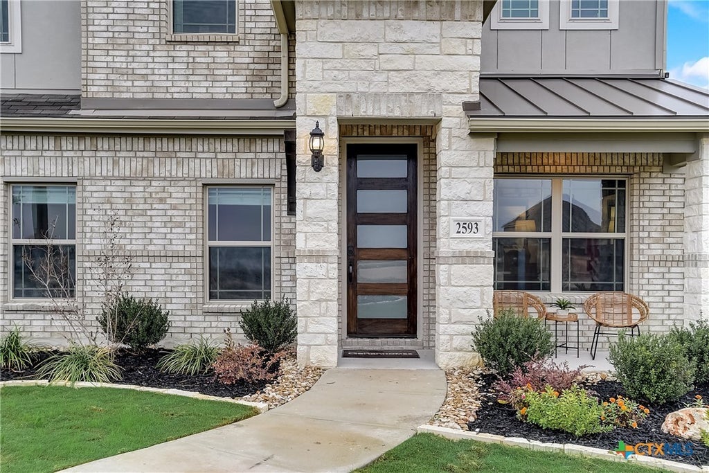 This stunning Capri floor plan by Brightland Homes is the builder's model and filled with designer upgrades. With 2,989 square feet, this two story home offers four bedrooms, three and a half bathrooms, a study, game room, media room, and an extended covered patio. The open concept layout features high ceilings and an upgraded kitchen with built in oven and microwave, forty two inch cabinets with crown molding, and added cabinetry above the refrigerator. A private study with double doors is located off the entry. The enlarged owner's suite provides extra space for relaxation, and the luxurious bath includes separate vanities and a spacious shower. Upstairs offers a large game room and media room, perfect for entertaining. Additional upgrades include eight foot front and interior doors on the main level. Located in a sought after community, this model home combines elegance and functionality. Move in ready and perfect for those seeking space, style, and comfort. *Model furniture and decor not included.