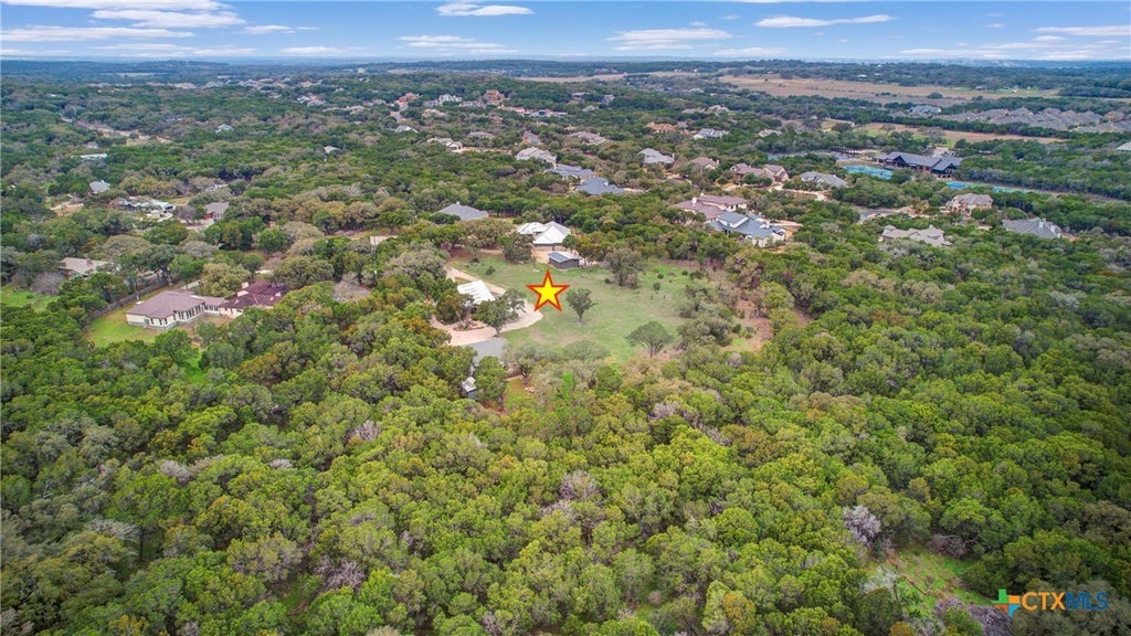 Welcome to Mission Valley Estates- an established and desirable acreage community located just off Hwy46/1863. Here you are minutes from the conveniences and attractions of New Braunfels, yet tucked away in the hill country for ultimate peace and privacy (NO HOA, NO CITY TAXES). This 2.8-acre homesite offers a level, build-ready lot surrounded by mature trees, a park-like setting and serene views. The existing 1,433 sq. ft. ranch home features 2 bedrooms, 2 bathrooms, a designated office with a pocket door, open-concept layout, nice sized kitchen, walk-in pantry, easy to maintain LVP/Tile flooring (no carpeting), and a large front porch perfect for relaxing. French doors open to a secluded backyard ideal for entertaining with a spacious deck, 16x12 outdoor kitchen structure and much more. Additional highlights include gated entry, circle drive with ample guest/boat/RV parking, a 1,830sq. ft structure with huge carport, 21x8 additional storage shed, partially fenced yard, private water well and backs to T Bar M/ Newcombe Tennis Ranch for added greenspace. Live comfortably in the current home while you build your dream residence. With its prime location, flat build site and established utilities, the possibilities are endless. Zoned to NBISD and centrally located between San Antonio and Austin for easy commutes. This is an acreage property you don't find everyday.