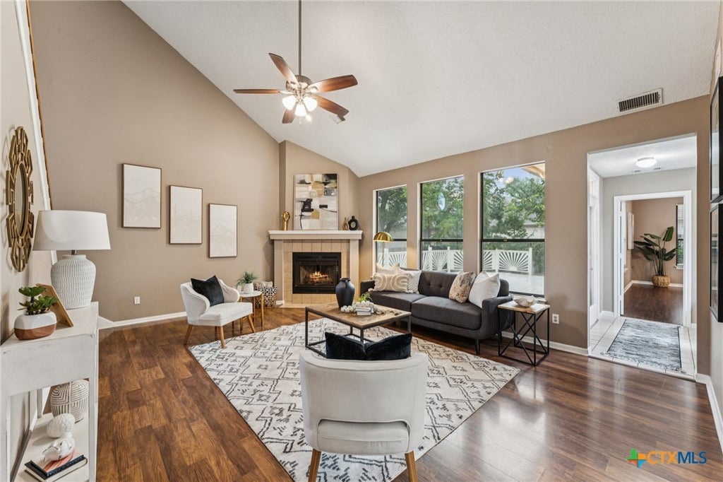 Spacious NW Austin home with dual primary suites. This beautiful home offers a rare layout with a primary bedroom suite on both floors - perfect for multigenerational living, a private studio, a flexible retreat or rental income opportunity. Recent interior paint and a stunning central atrium flood the kitchen, living room, and downstairs suite with natural light. The downstairs primary suite is oversized and private, while the spacious living area features a soaring ceiling and cozy corner fireplace. The bright kitchen includes white cabinetry, appliances, and plenty of workspace. Upstairs, you'll find a second primary suite plus two additional bedrooms with high ceilings, giving everyone room to spread out. With laminate wood and hard tile flooring throughout - no carpet - the home is easy to maintain. Relax or entertain on the outdoor deck and enjoy the benefits of a corner lot. The ideal location is just two blocks from an HOA park and pool and a highly rated Round Rock ISD elementary school. It’s less than 2 miles from the new Apple Campus, with quick access to Parmer, 183, tech employers, restaurants, retail, grocery options, and only 10 minutes from The Domain - Austin’s vibrant second downtown.