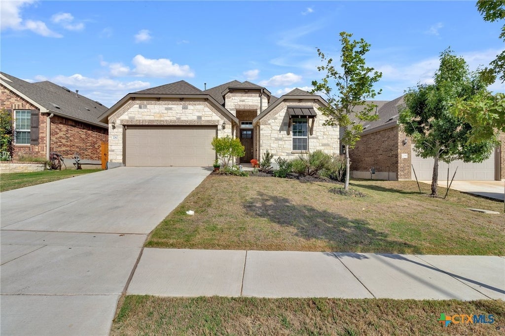 Welcome to this thoughtfully designed 3-bedroom, 2-bath home located in the highly sought-after Veramendi community of New Braunfels. Just one block from Veramendi Elementary, local daycare, and within walking distance to the resort-style pool, shopping and a breakfast restaurant, this home offers both comfort and convenience in one of the area’s most vibrant neighborhoods. Inside, an open-concept layout features a dedicated study/media room or 4th bedroom, plus an additional office nook, perfect for today’s flexible lifestyle. The spacious living room is centered around a cozy gas fireplace, creating a warm and inviting atmosphere for gatherings. The kitchen is a chef’s dream with granite countertops, a grand island, double ovens, a gas cooktop, and plenty of storage. Both bathrooms are appointed with granite as well, including extra-long vanities for added functionality. The spacious primary suite is a true retreat with bay windows that create the ideal space for a cozy reading nook or exercise area. The primary bath includes dual sinks, an enlarged walk-in shower with a bench seat, and a relaxing garden tub. Secondary bedrooms are comfortably sized with nearby access to the guest bath. Tile flooring enhances the main living areas, while plush carpet creates comfort in the bedrooms. Step outside to a private backyard featuring a covered patio and a majestic oak tree that offers shade and charm year-round. Living in Veramendi means more than just a home—it’s a lifestyle. Residents enjoy miles of walking trails, pocket parks, playgrounds, nature playscapes, and more. With more planned retail, restaurants, and gathering spaces on the way, this community blends modern living with Hill Country beauty.